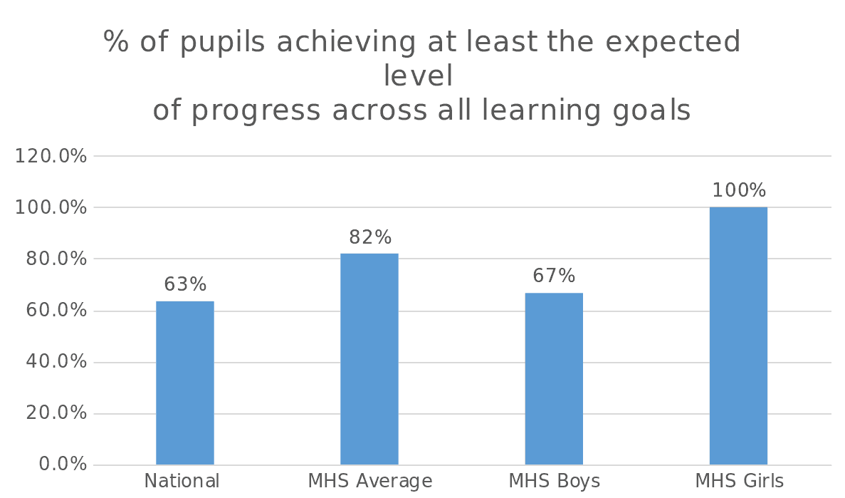 Nationally, at the end of Year 1, 82% of children are reaching the screening threshold. In comparison, an average of 95% of Mulberry House Reception aged children are meeting the screening threshold a year ahead of target. With 100% of Mulberry House School Boys achieving the target and 90% of girls.