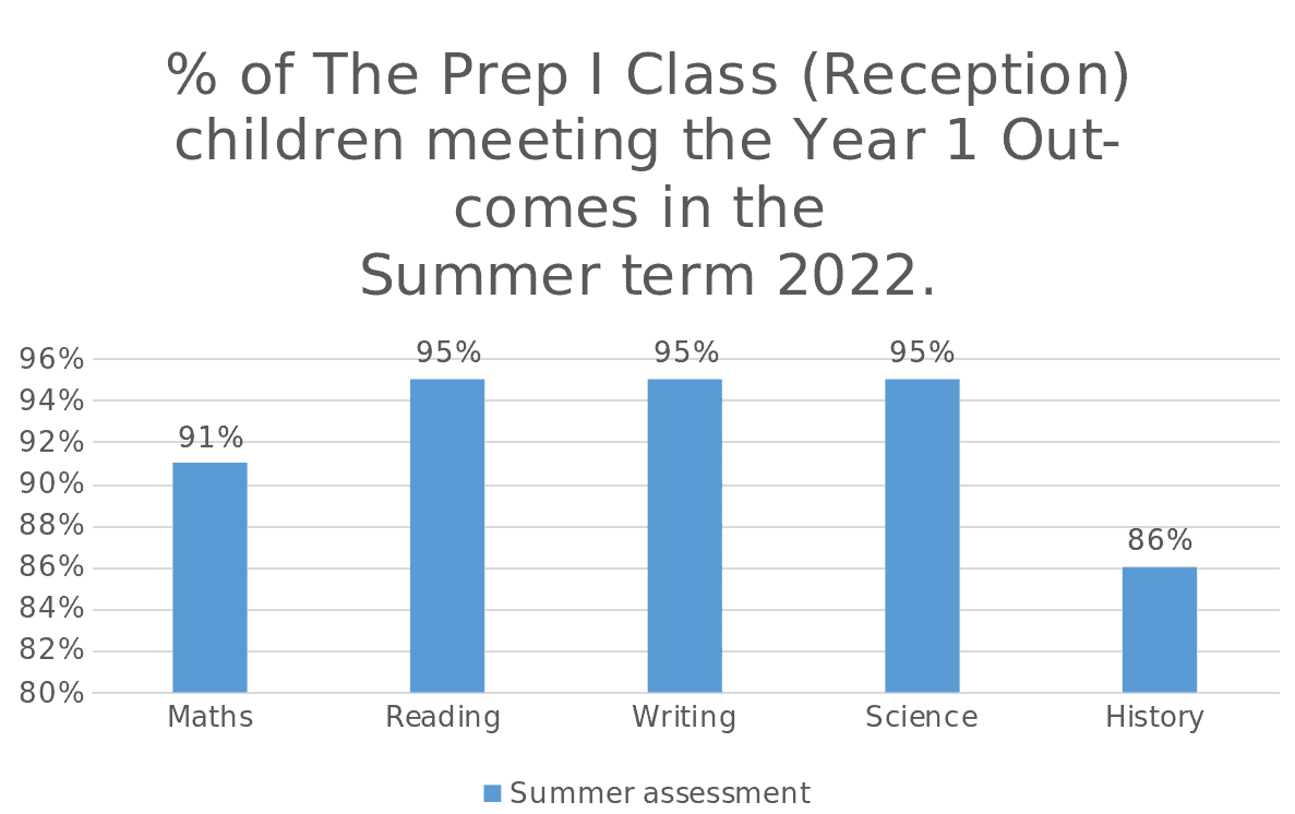 Having exceeded expectations within the EYFS, the cohort have also been assessed against the outcomes in Year 1. 95% of the cohort are also meeting the Year 1 expectations within Reading, Writing and Science. 91% of the cohort are also achieving the Year 1 expectations in Maths a year ahead of national expectations and 86% of pupils are meeting expectations in Year 1 in History.
