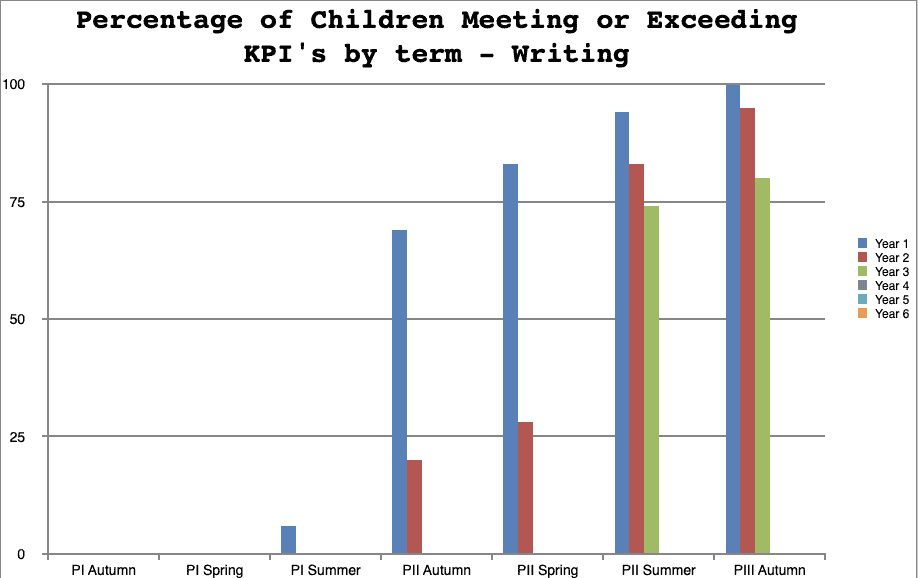 These graphs represent the high academic standard achieved at the school. Assessment of children’s work takes place both internally and is externally moderated with other schools. These results and the outcomes of assessments for next schools at 7+ show that the curriculum is appropriately challenging to enable all children to succeed.